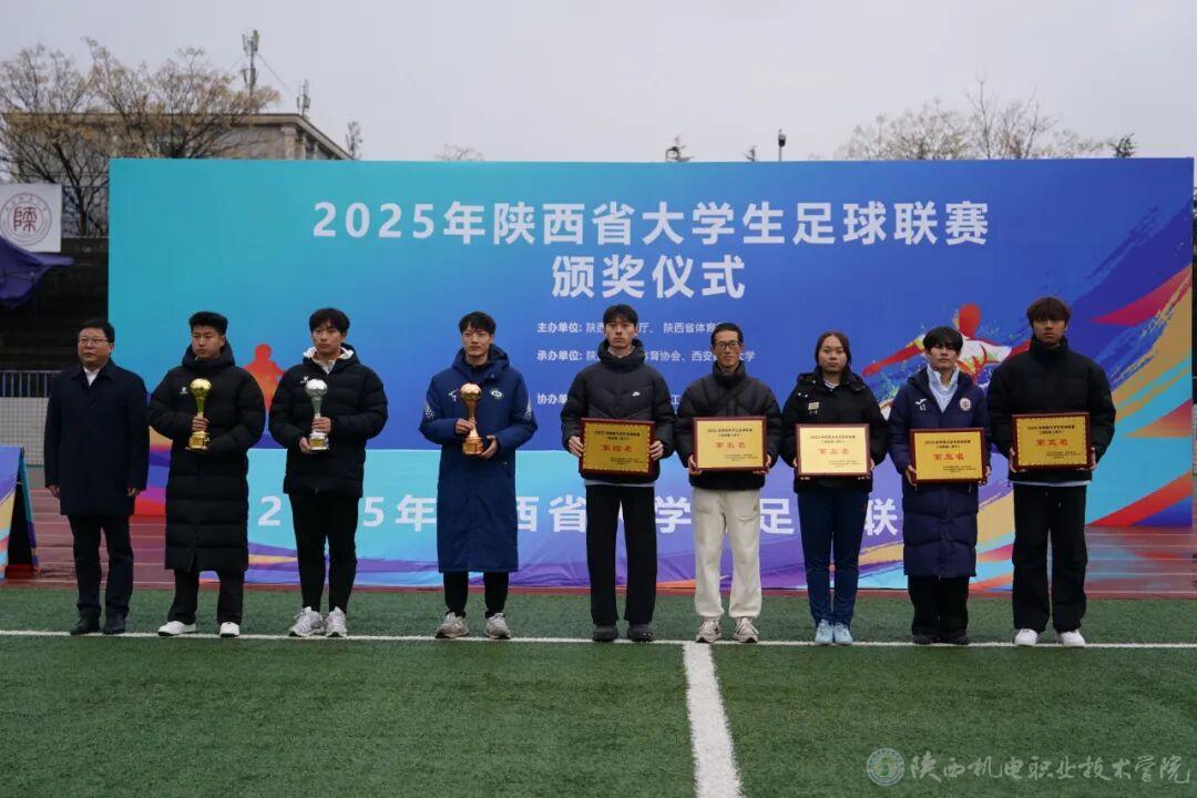 12月12日,2025年陕西省大学生足球联赛在陕西师范大学长安校区圆满落幕。我校男子足球队在高职高专组最终排位赛中稳扎稳打、奋勇争先,凭借顽强的斗志与默契的配合斩获第五名,再度延续了我校校园足球的奋进姿态。
