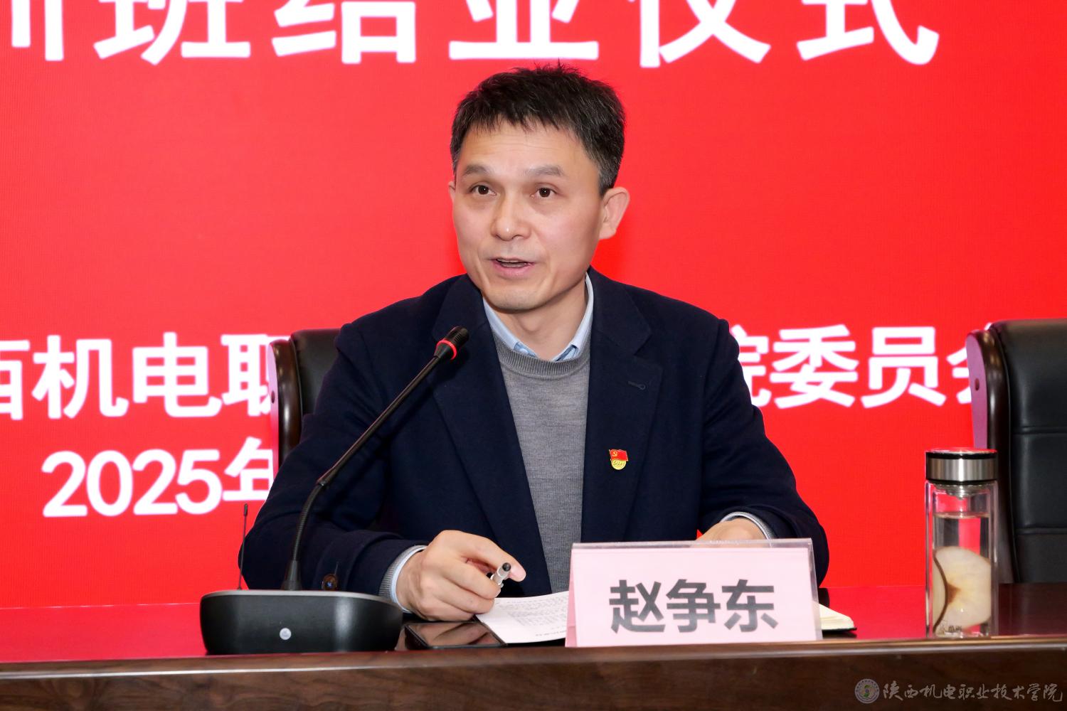 赵争东同志在讲话中总结了此次培训的特点,肯定了培训的成效,对全体学员提出了新的要求和期望。他要求全体参训学员要以此次培训为契机,切实做到:一是深悟理论精髓,筑牢思想根基;二是坚守入党初心,砥砺纯粹品格;三是明晰党员标尺,校准行动方向。希望以此次结业为新起点,将培训收获的思想力量、责任担当,转化为学习生活的实际行动,在技能成才道路上勇攀高峰,在服务他人、奉献社会中锤炼党性,早日成为合格共产党员,为学校发展、为实现中华民族伟大复兴贡献青春力量!