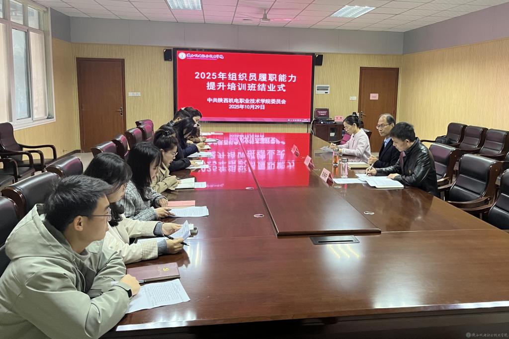10月29日,陕西机电职业技术学院党委在蟠龙校区图书馆二楼会议室召开组织员履职能力提升培训班结业式。党委书记伊逊智出席并讲话,党委委员、院长助理、党委组织部部长赵争东,学校专兼职组织员参加会议。结业式由党委组织部综合科科长张玉琼主持。